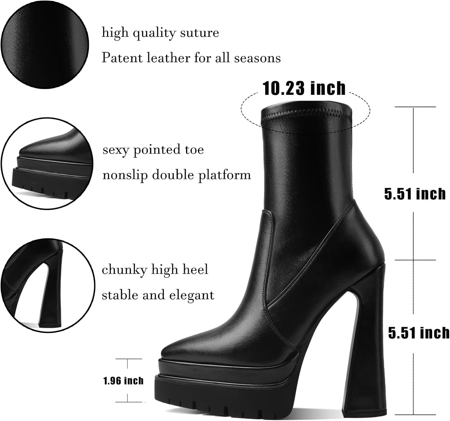 CHUNKY HEEL PLATFORM BOOTS:The perfect high heel boot for every women, and it will make you feel confident.details add the chic and elegant taste.
