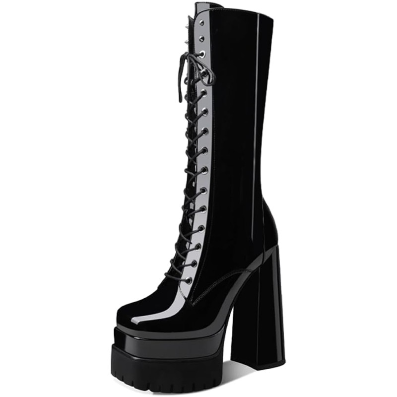 CHUNKY HEEL PLATFORM BOOTS:The perfect high heel boot for every women, and it will make you feel confident.details add the chic and elegant taste.